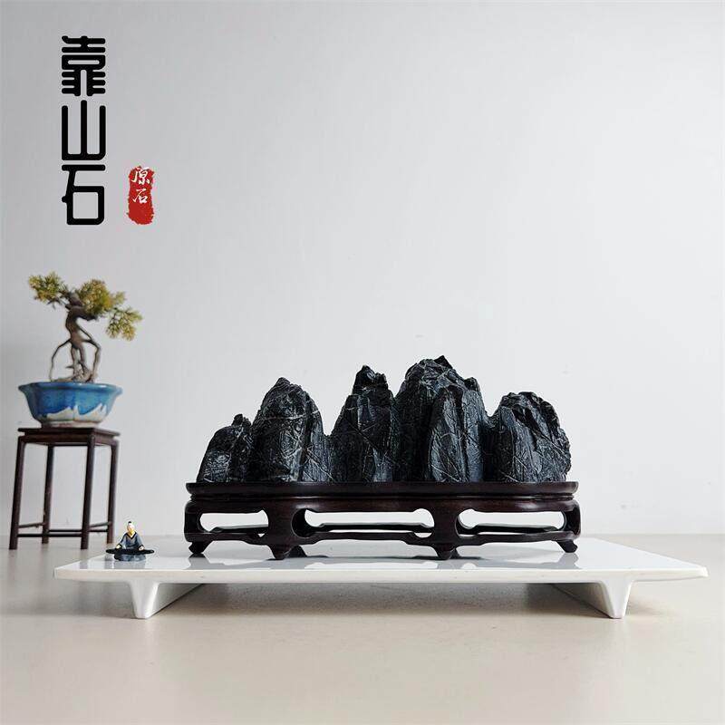 枯山石摆件 灵璧石山脉 微景观山石 真山石盆景 玄关书房毛笔架