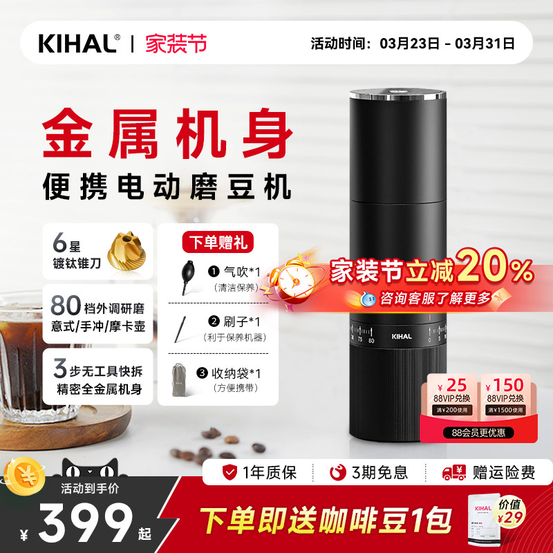 【热销推荐】KIHAL/起好MD03电动磨豆机手冲意式咖啡豆家用研磨机