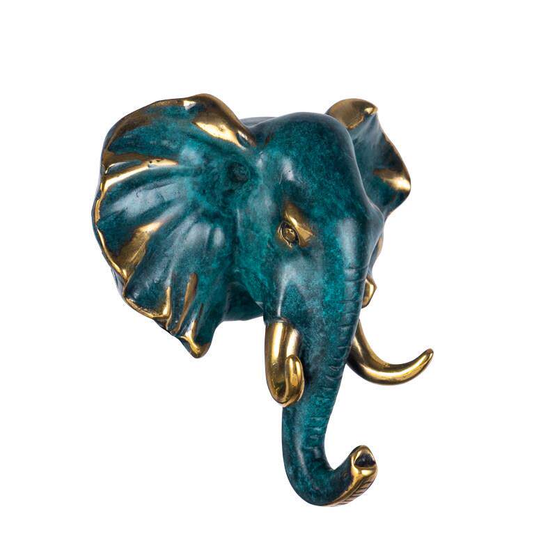 中式动物铜挂钩鹿头大象挂件客厅玄关卧室墙上装饰壁挂创意工艺品