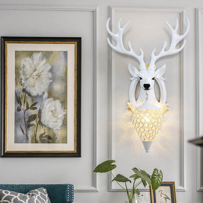 招财欧式鹿头壁灯北欧创意客厅电视背景墙床头个性造型鹿角灯壁挂