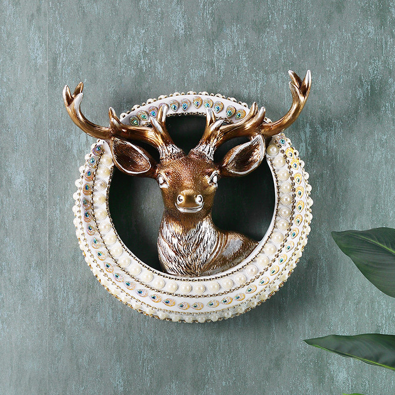 欧式招财鹿头壁挂壁饰创意客厅电视背景墙装饰玄关装饰创意墙壁挂