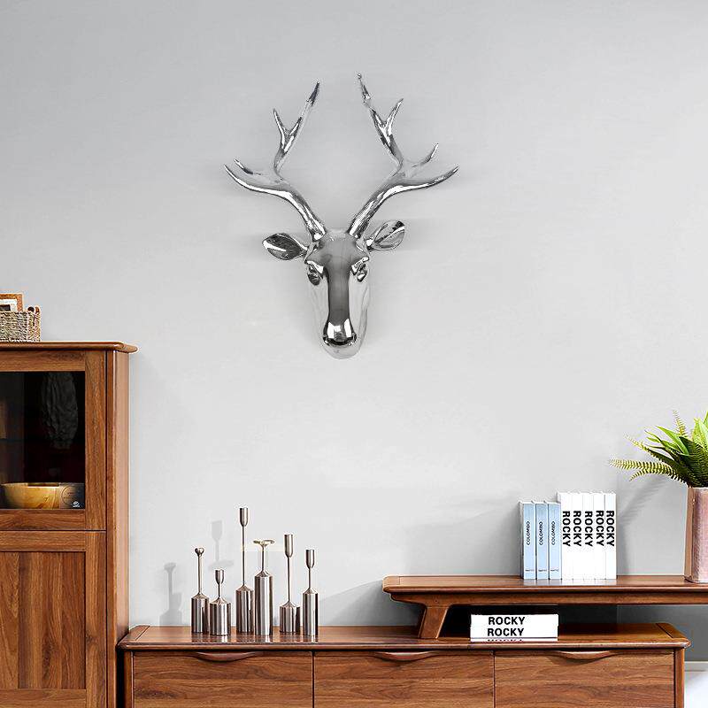 北欧风格创意美式电镀招财鹿头装饰壁挂壁饰客厅大厅大堂卧室挂件