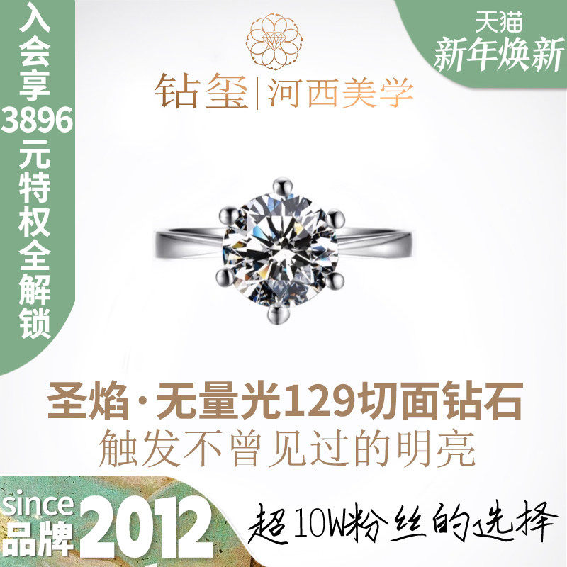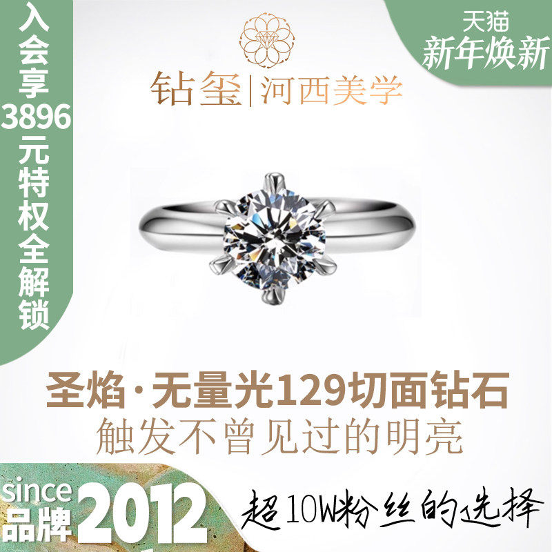 【培育】钻玺含光 129切面培育钻石铂金戒指围镶显钻1克拉gia钻戒