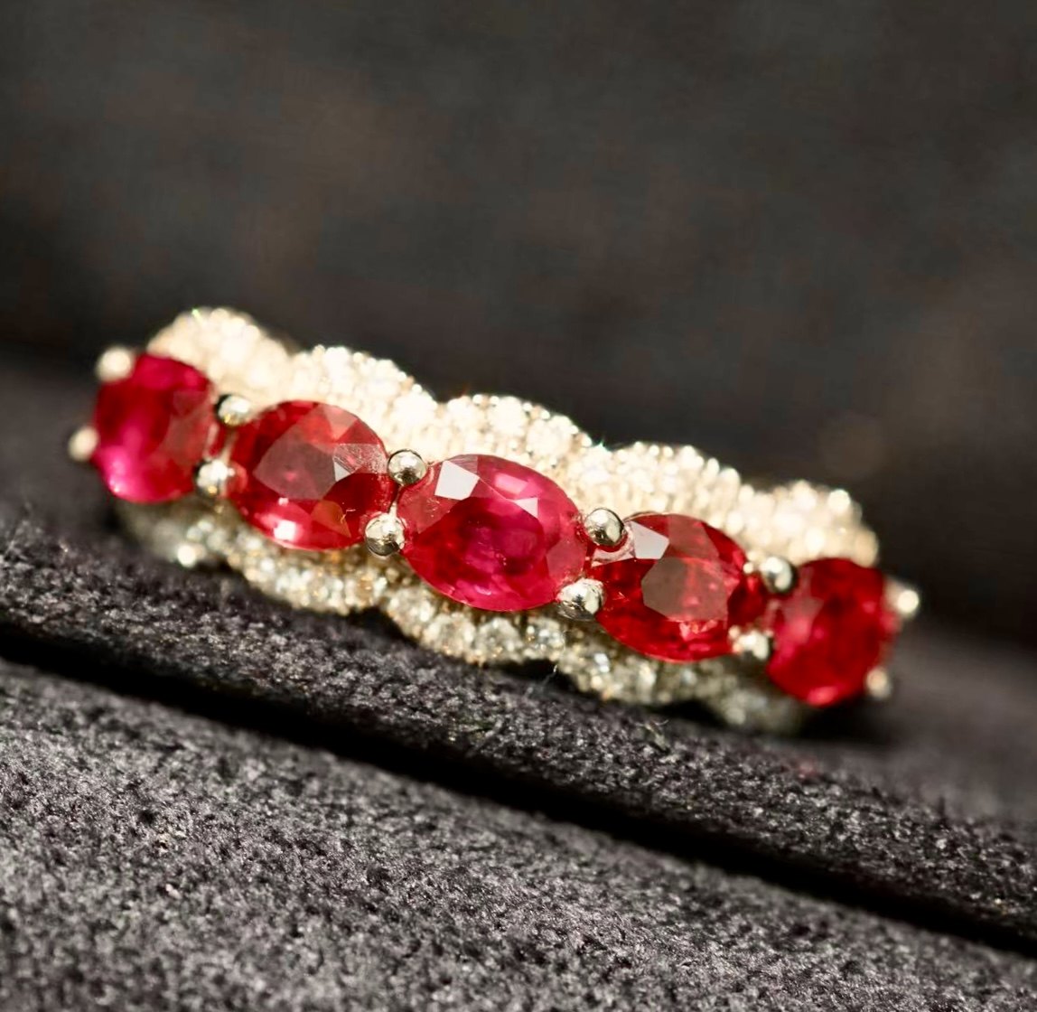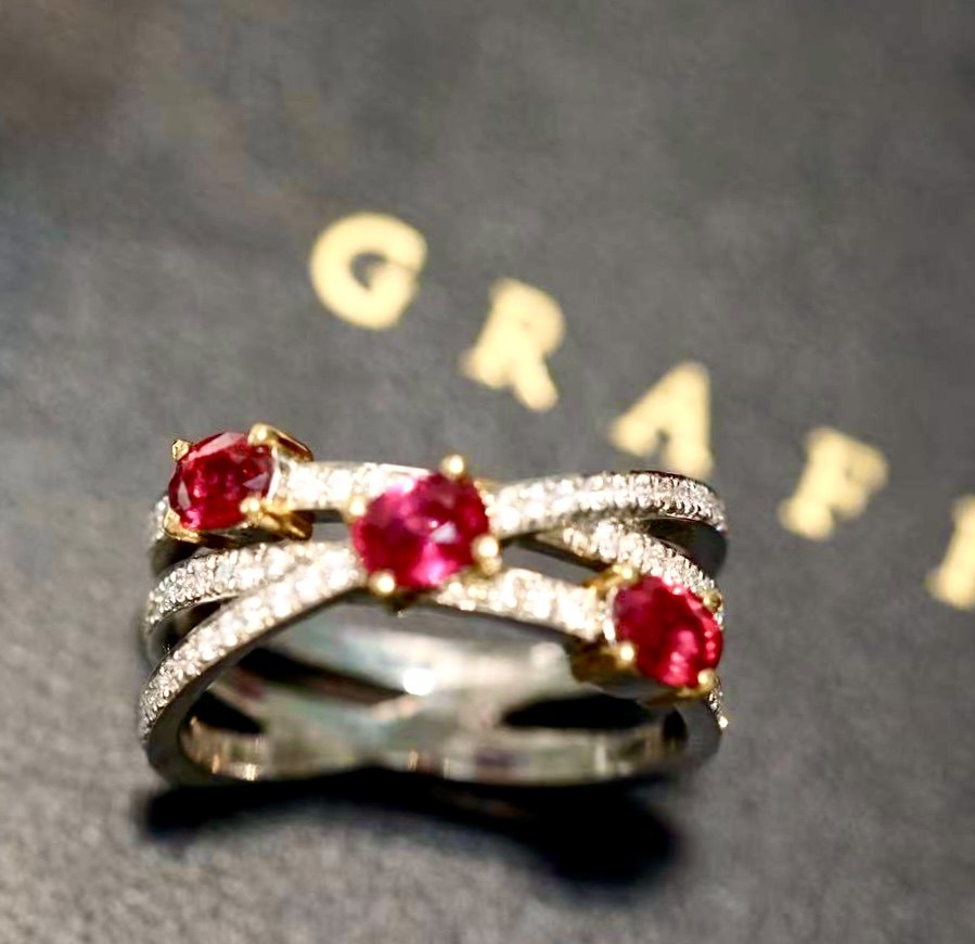 不过万 亏本卖 无烧 鸽血红红宝石戒指排钻戒指18k白金镶天然钻石