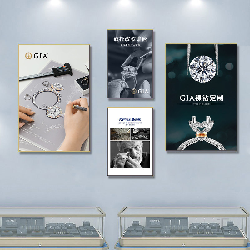 珠宝店挂画GIA钻石图奢侈品店首饰店墙面装饰画裸钻戒指金店壁画