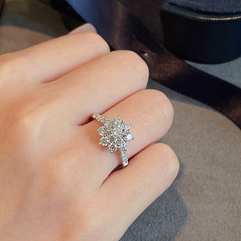 GIA天然钻石Pt950雪花天然钻戒1克拉情侣对戒结婚求婚戒指送女友
