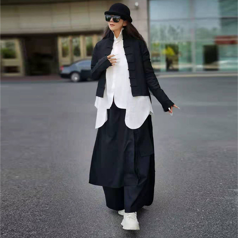 杨丽萍原创设计官方民族风优雅百搭复古长袖立领打底衫黑白上衣秋