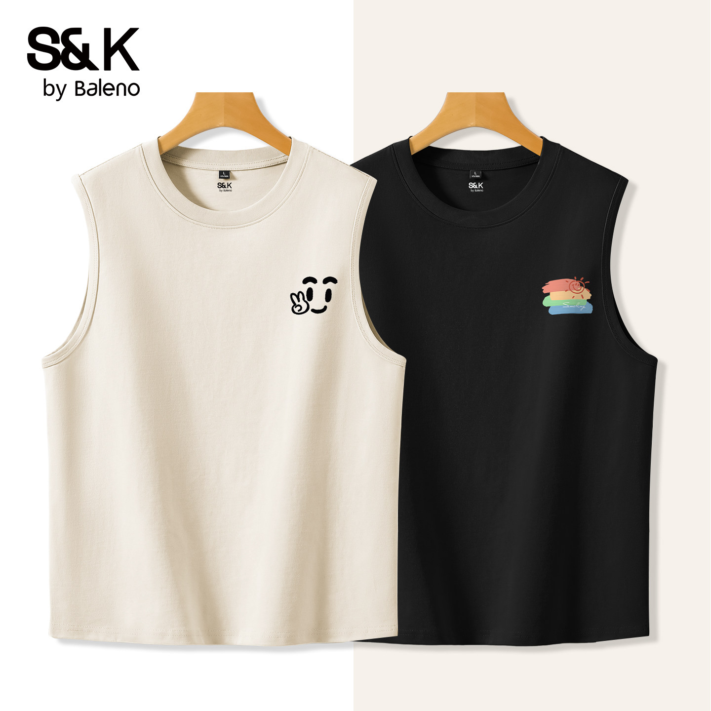 班尼路S&K系列背心男款夏季运动无袖t恤宽松大码纯棉篮球坎肩男A