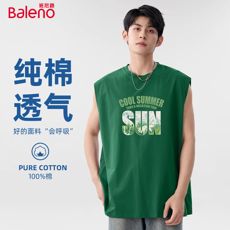 班尼路S&K系列纯棉背心男夏季宽肩运动健身坎肩男士潮流汗衫t恤A