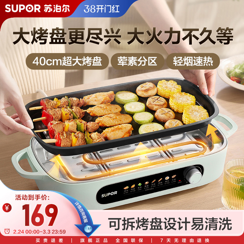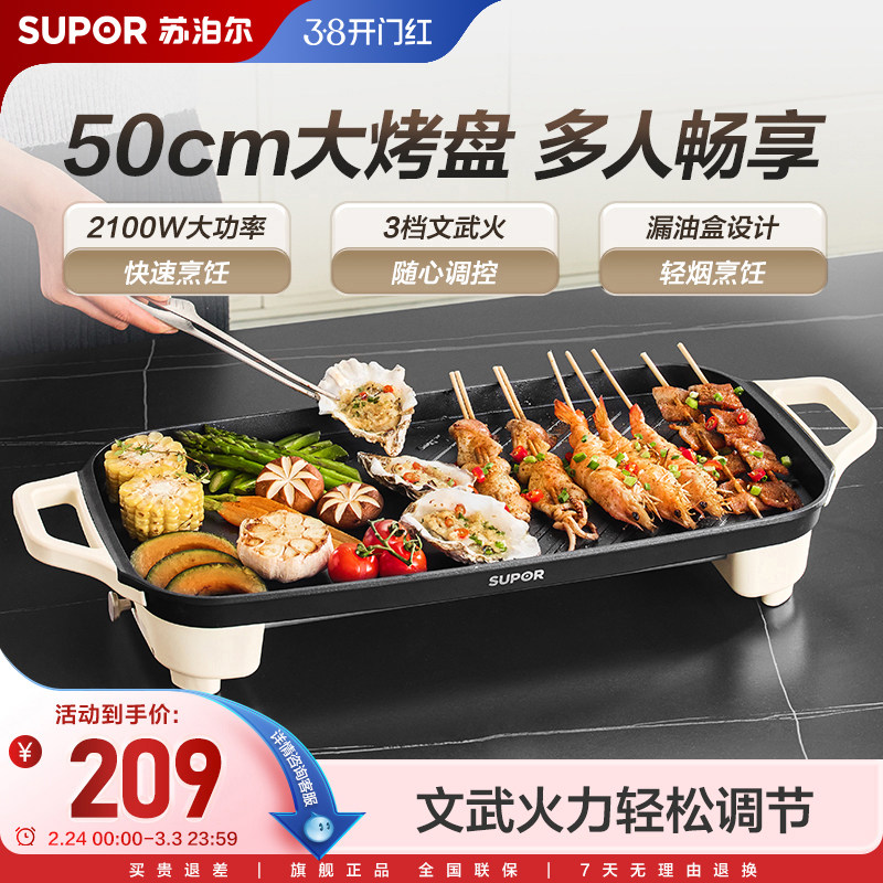 苏泊尔电烤盘烤肉盘家用不粘电烧烤炉烤肉串机家庭室内轻烟电烤锅