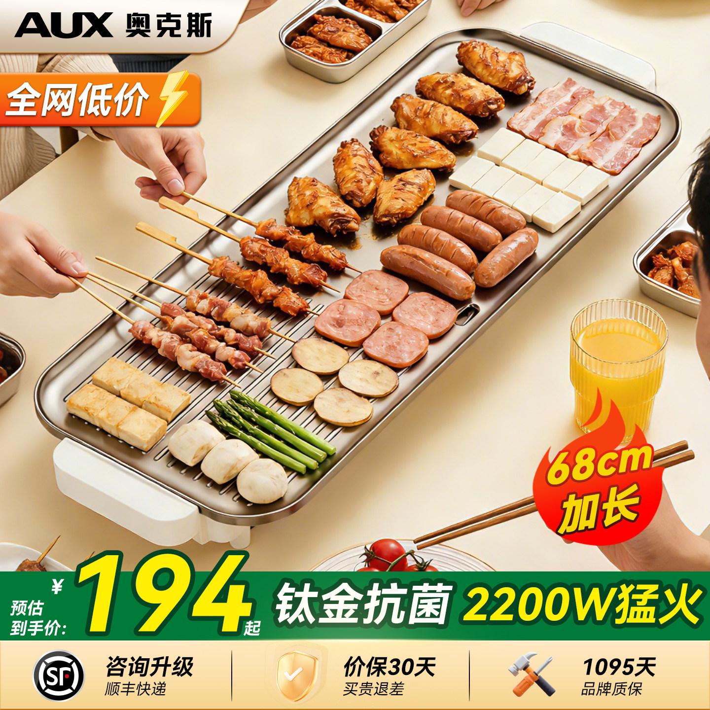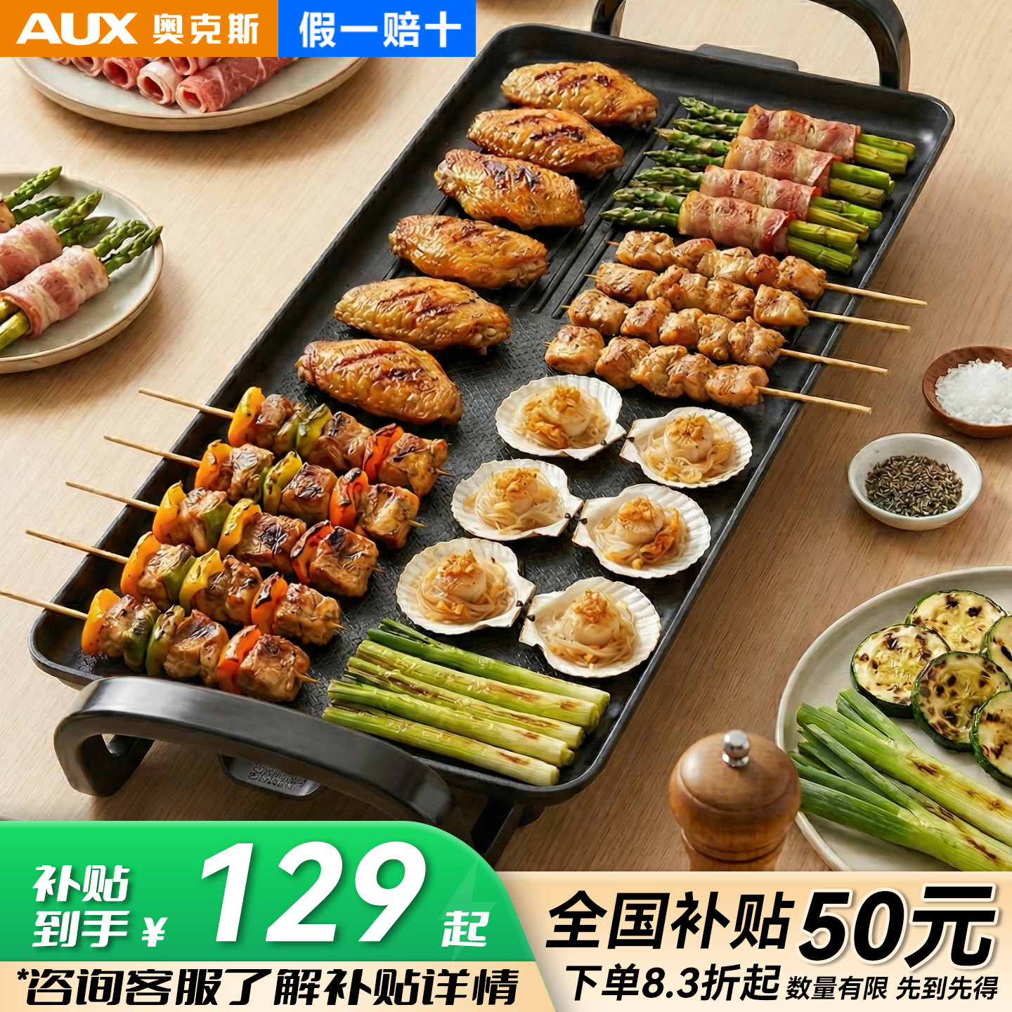 AUX/奥克斯烤肉盘电烤盘家用无烟烧烤电烧烤炉烤肉锅特大号烤肉机