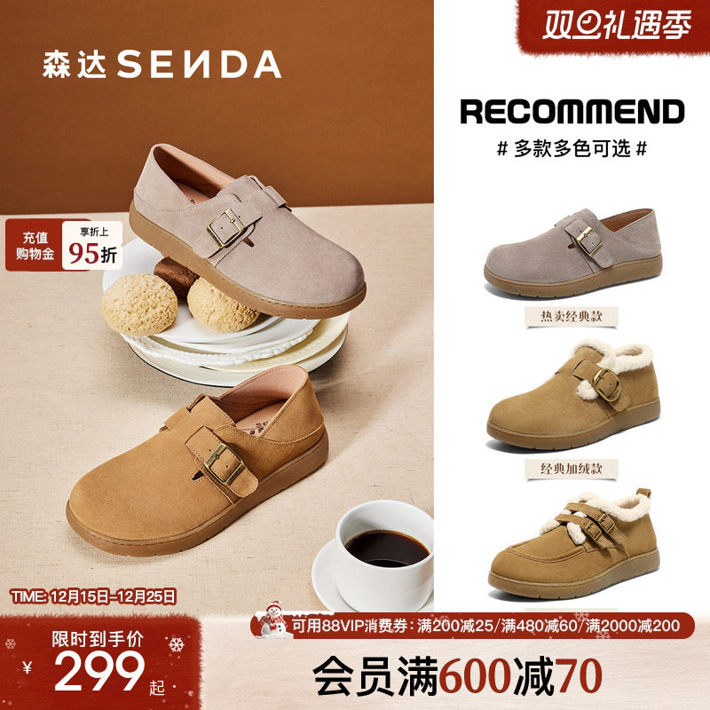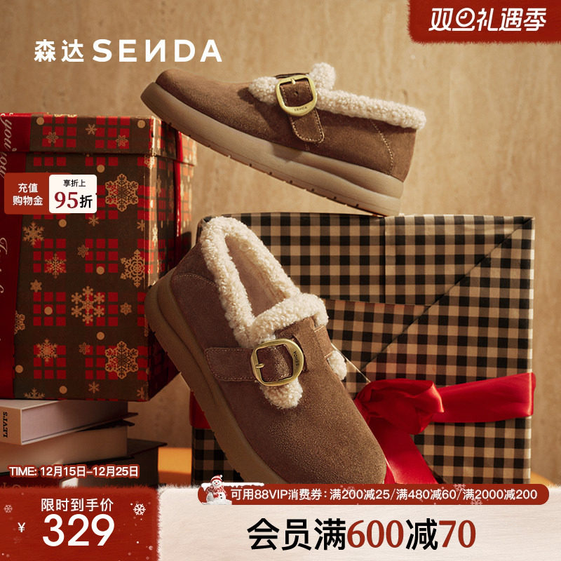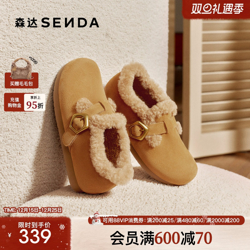 森达毛绒勃肯鞋毛呢冬26年新款鞋口羊毛加绒保暖毛毛鞋冬鞋棉鞋