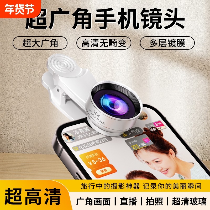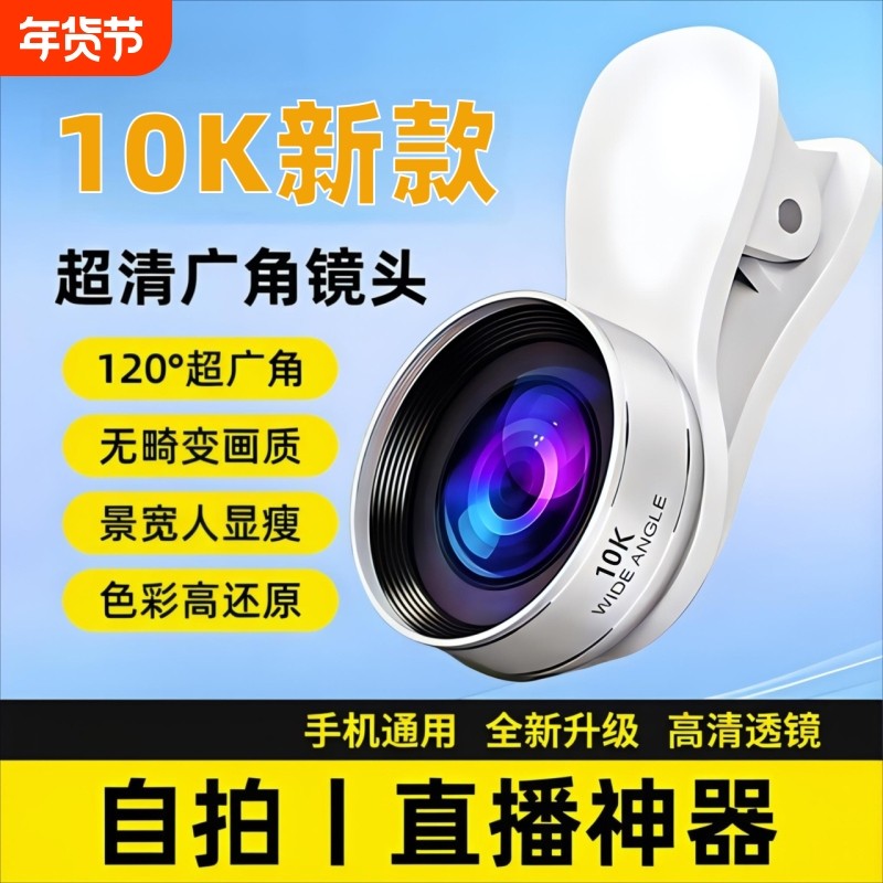 10K广角镜头直播通用手机超清玻璃专业拍摄外置自拍照摄影头抗畸变2025新款自拍辅助神器适用于苹果13pro华为