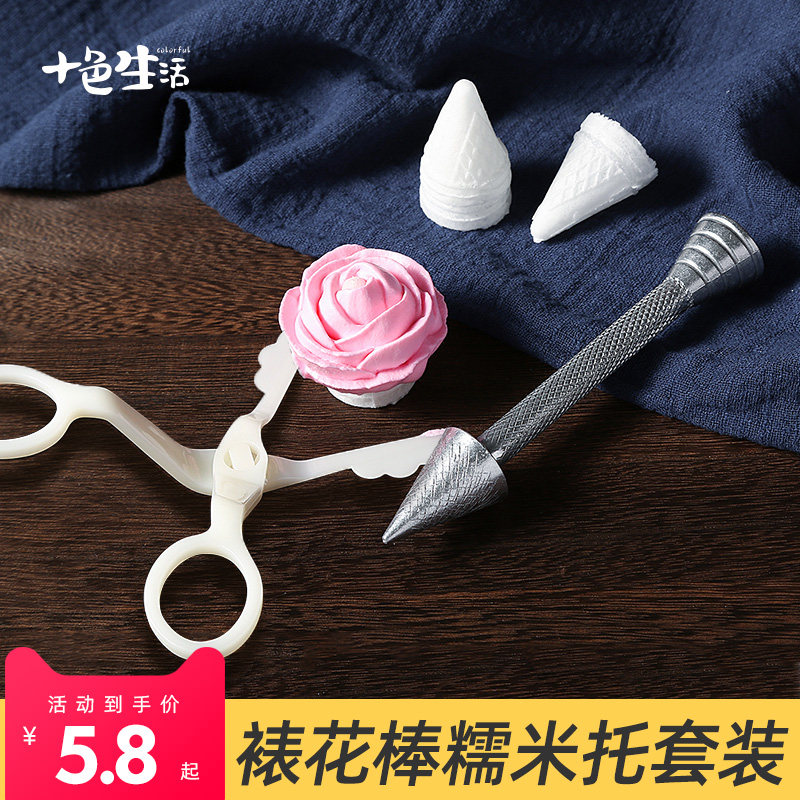 蛋糕装饰奶油铝合金裱花棒裱花托钉韩式裱花嘴糯米托烘焙工具套装