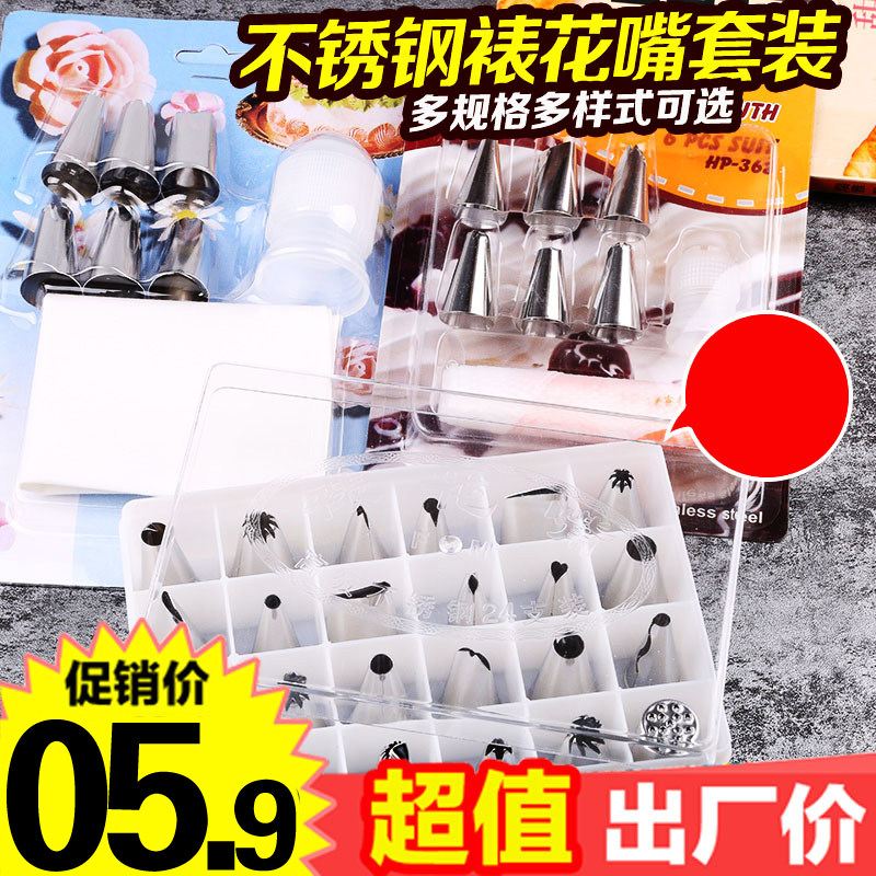 不锈钢韩式裱花嘴套装玫瑰花蛋糕奶油挤花器大中小号全套烘焙工具