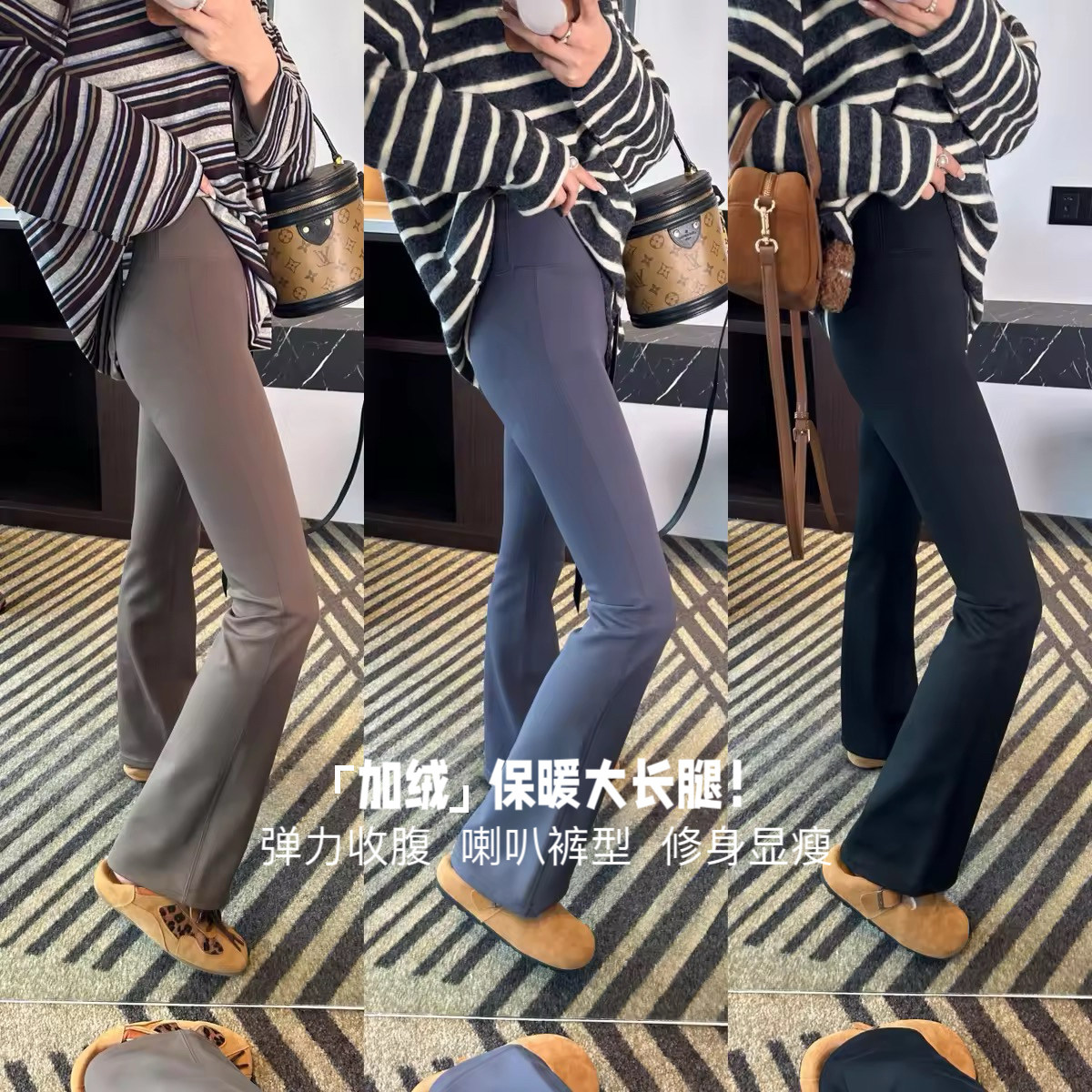 立显大长腿!~复合磨毛人鱼喇叭裤女秋冬修身显瘦高腰微喇长裤子