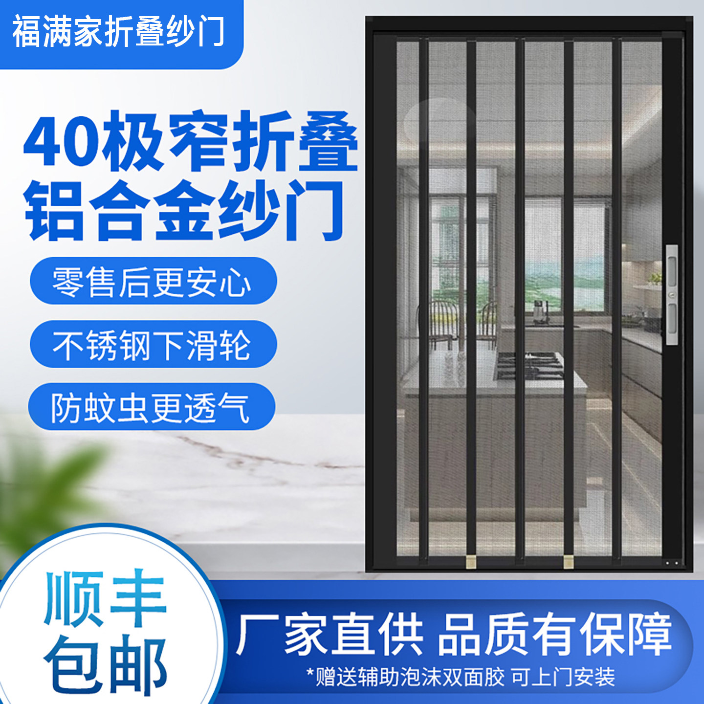 折叠纱门伸缩推拉式隐形纱窗门自装铝合金边框入户门防蚊门帘家用
