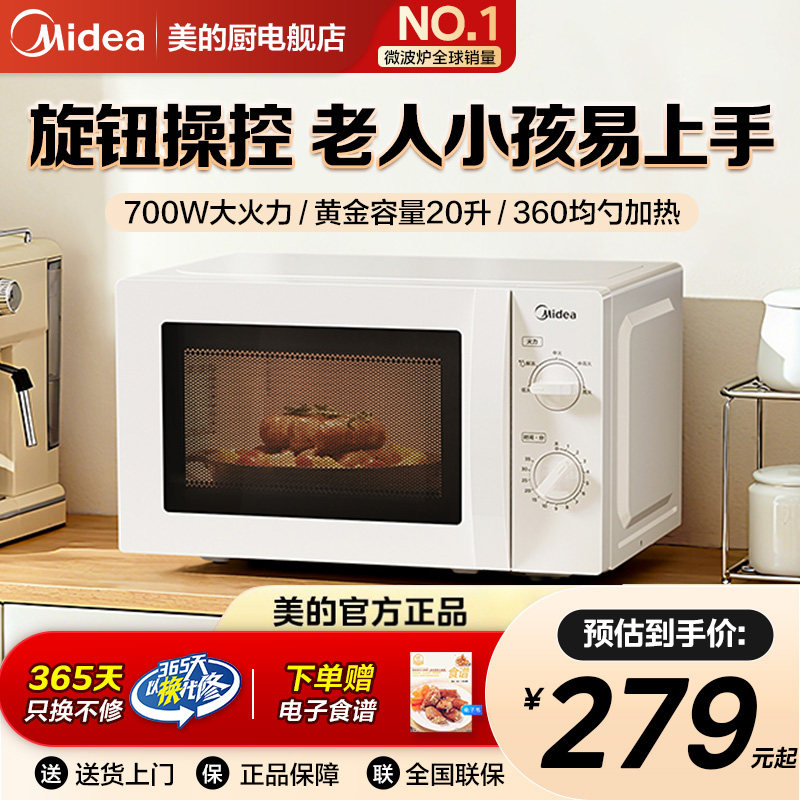 美的微波炉家用小型迷你20L多功能机械转盘一人热饭特价官方正品