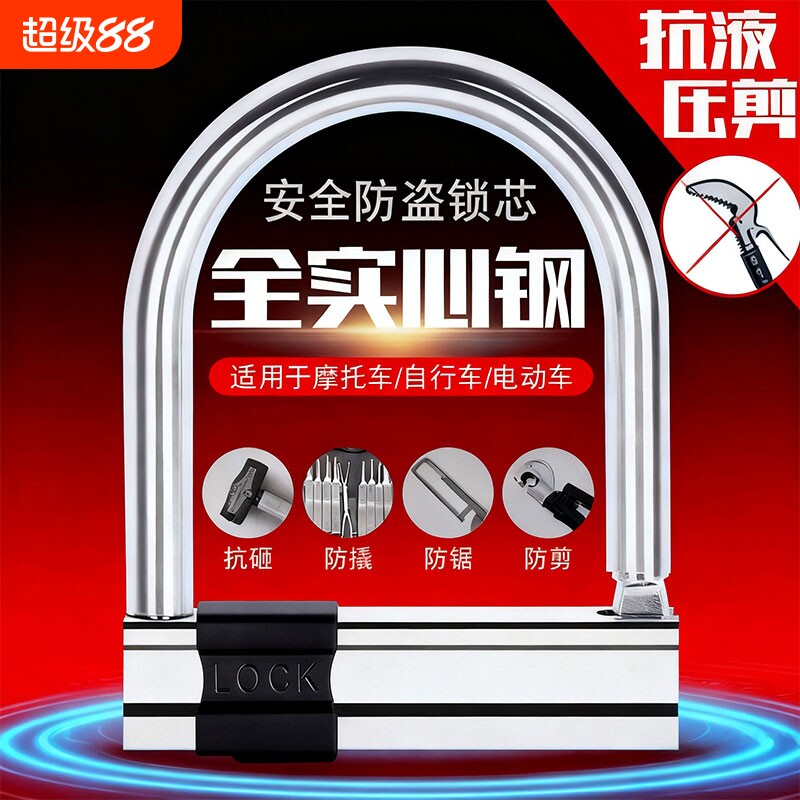 抗液压剪电动车锁摩托车U形锁防盗锁自行车电瓶车锁单车山地u型锁