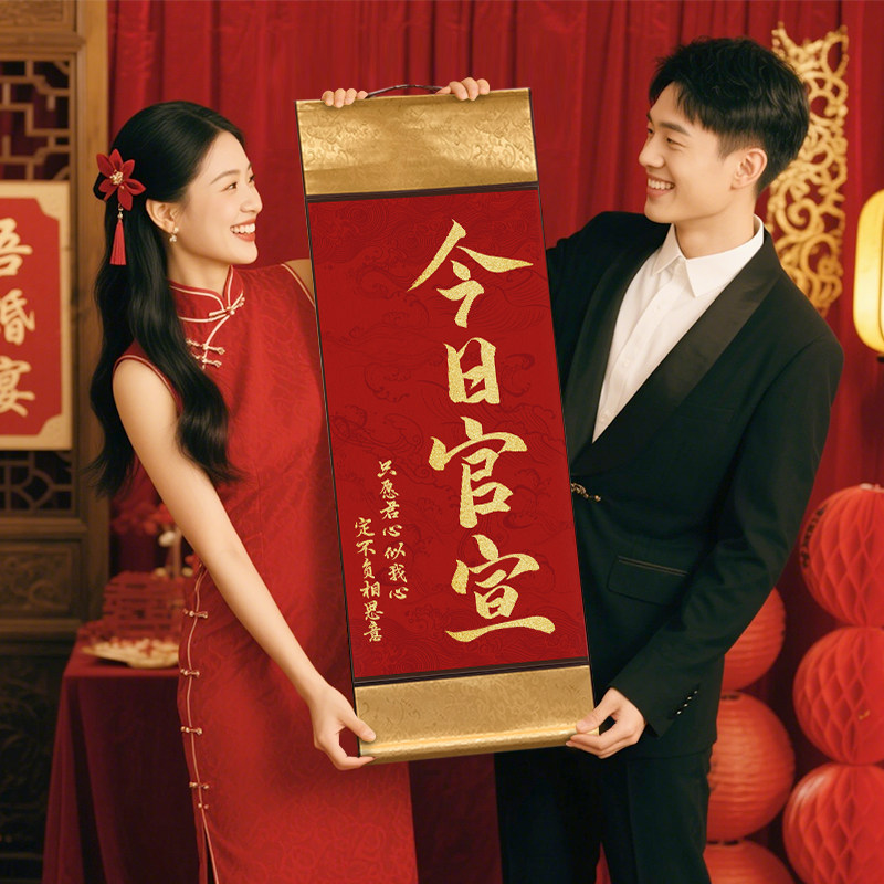 订婚拍照道具结婚手拉旗横幅登记领证礼装饰布置新娘手持晨袍用品