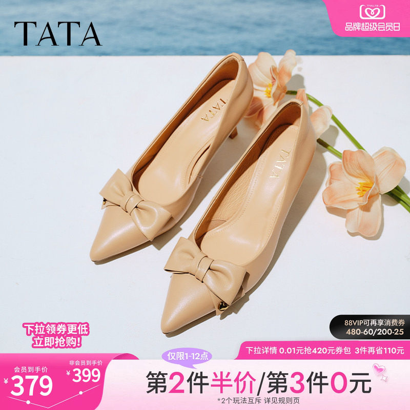 TATA他她裸色高跟鞋女新款羊皮尖头单鞋女通勤伴娘鞋婚鞋XMR01AQ5