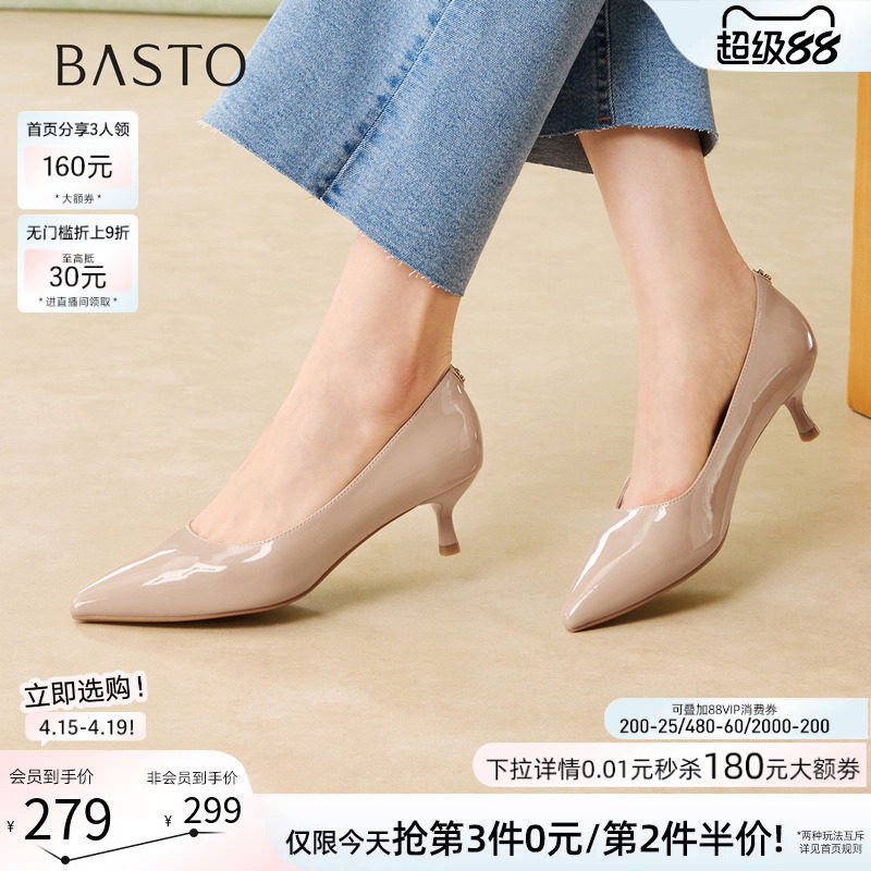 【花园派对】百思图春秋新款细跟裸色高跟鞋单鞋婚鞋尖头通勤女鞋