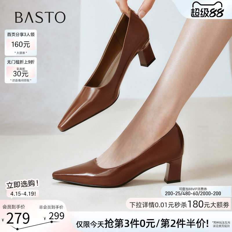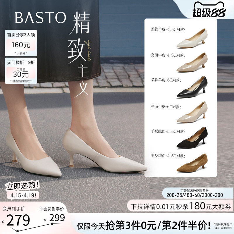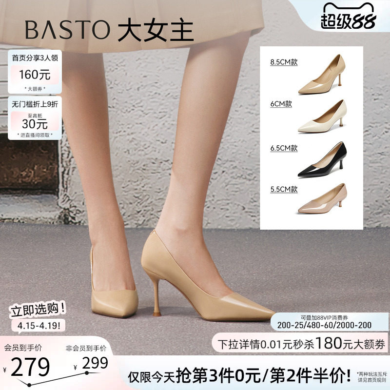 百思图26春新款通勤裸色细跟高跟鞋羊皮浅口单鞋尖头女鞋S6566AQ6