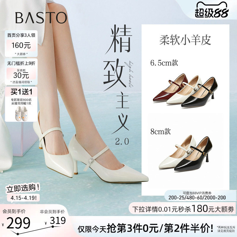 【精致主义】百思图26春新款尖头白色裸色高跟鞋真皮黑色女单鞋