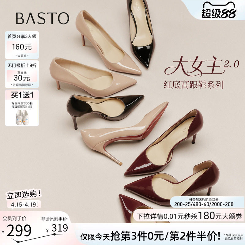 【大女主】百思图26春新款裸色高跟鞋黑色不累脚尖头女单鞋婚鞋