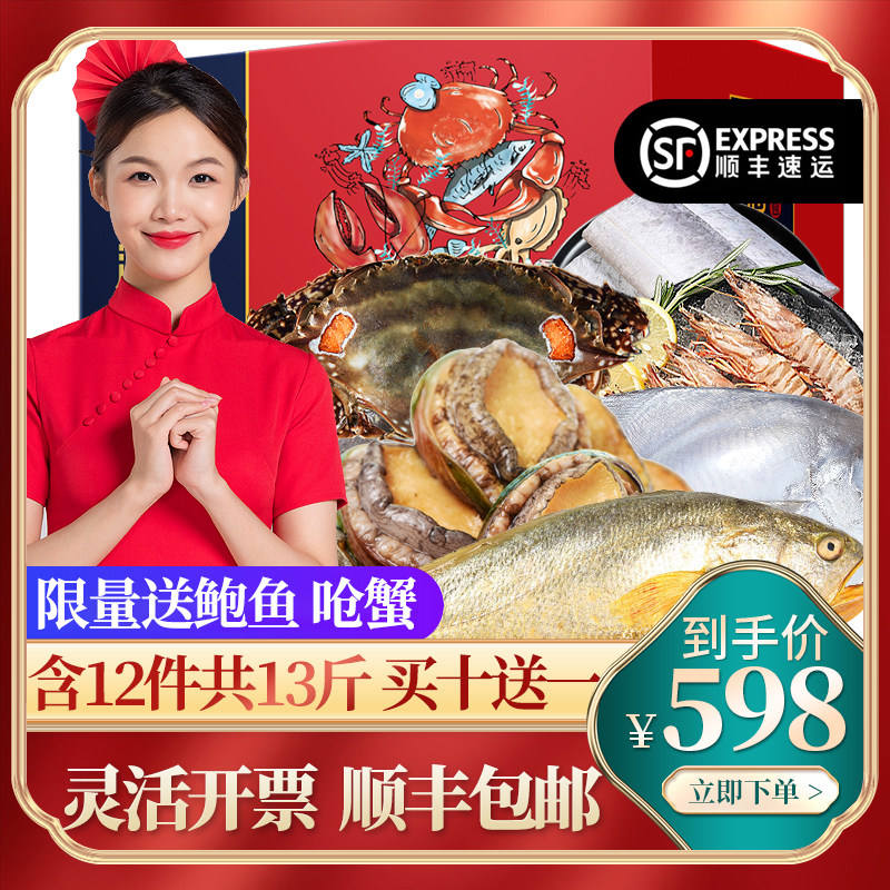 海鲜礼盒大礼包鲜活冷冻水产舟山海鲜年货鲍鱼佛跳墙送礼春节礼品