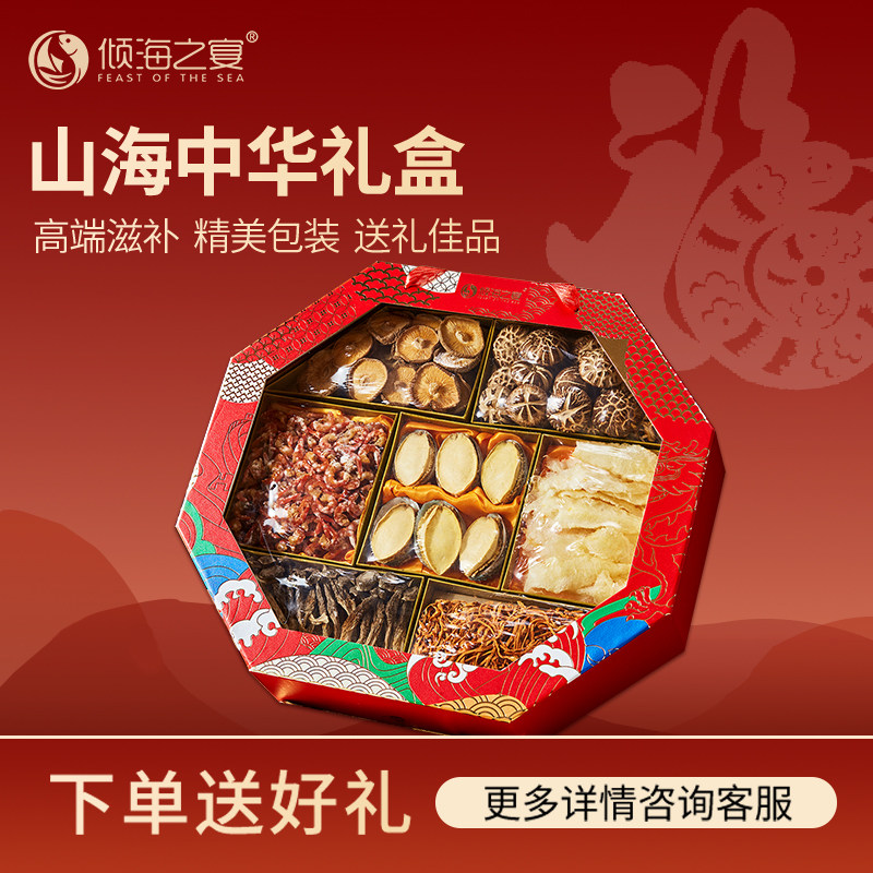 【送礼佳选】倾海之宴山海中华海鲜礼盒海鲜大礼包鲍鱼虾花胶礼品