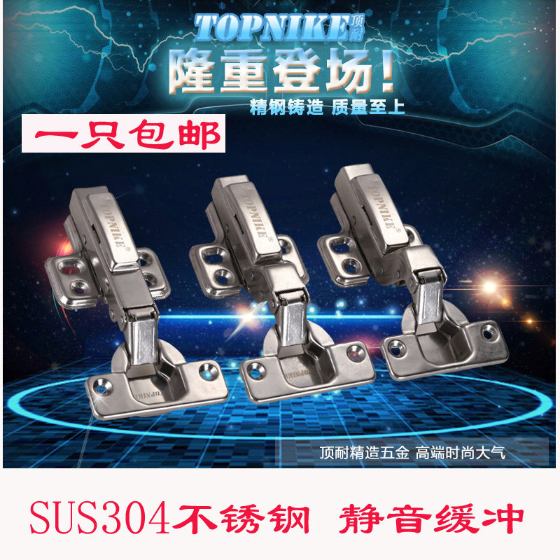 【铜芯】304不锈钢缓冲阻尼铰链橱柜门半盖中弯五金折叠飞机合页