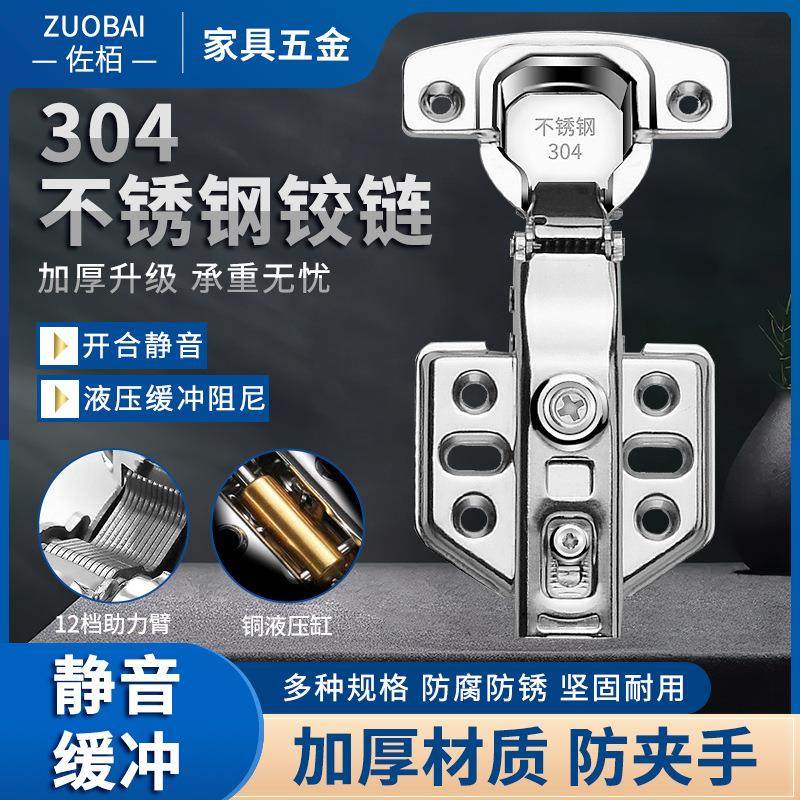 固特臻品304不锈钢橱柜铰链液压缓冲阻尼弹簧衣柜门合页五金配件