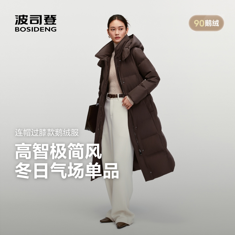 波司登25新款中长款连帽妈妈羽绒服女修身经典爆款外套B250245124