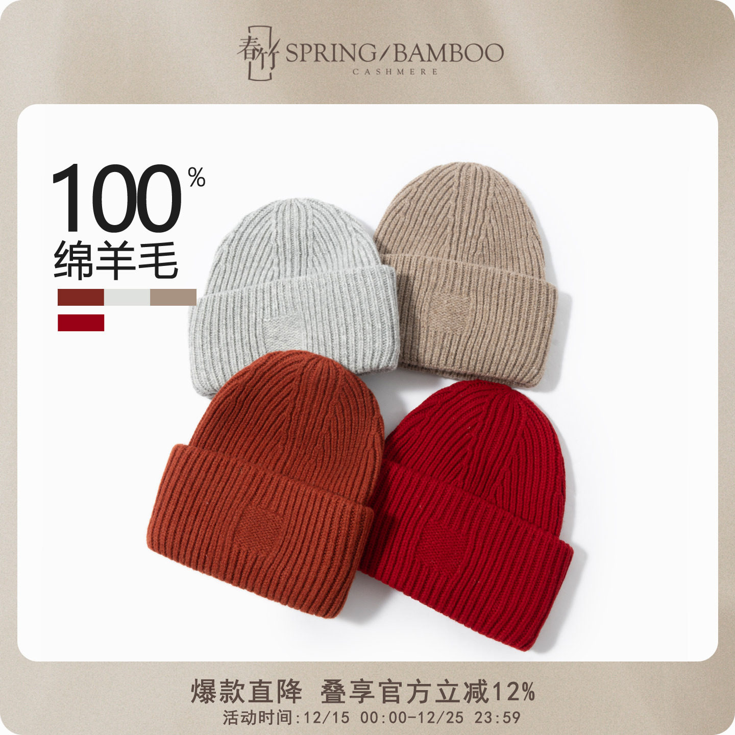 春竹2025秋冬新款100%绵羊毛舒适百搭针织保暖男女帽子加厚尖顶帽
