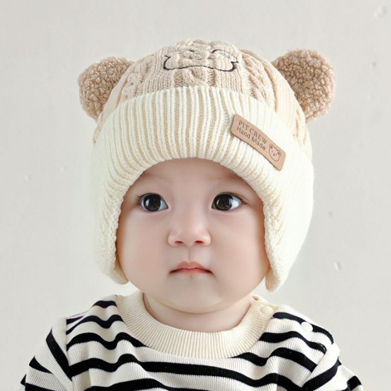 一岁婴儿帽子秋冬季新生儿男宝宝护耳毛线帽秋冬款保暖女童针织帽