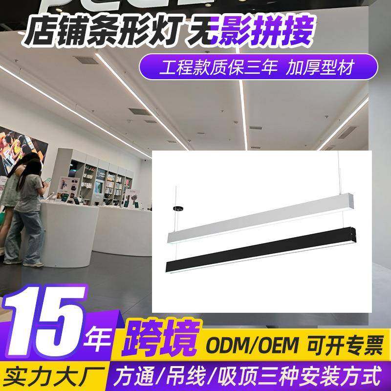 led直播无缝长条办公室吊灯吸顶吊线教室超市理发店店铺方通灯具