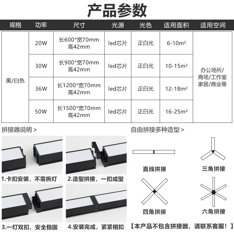 led办公室吊灯长条灯拼接造型创意商用店铺商场会议室专用条形灯
