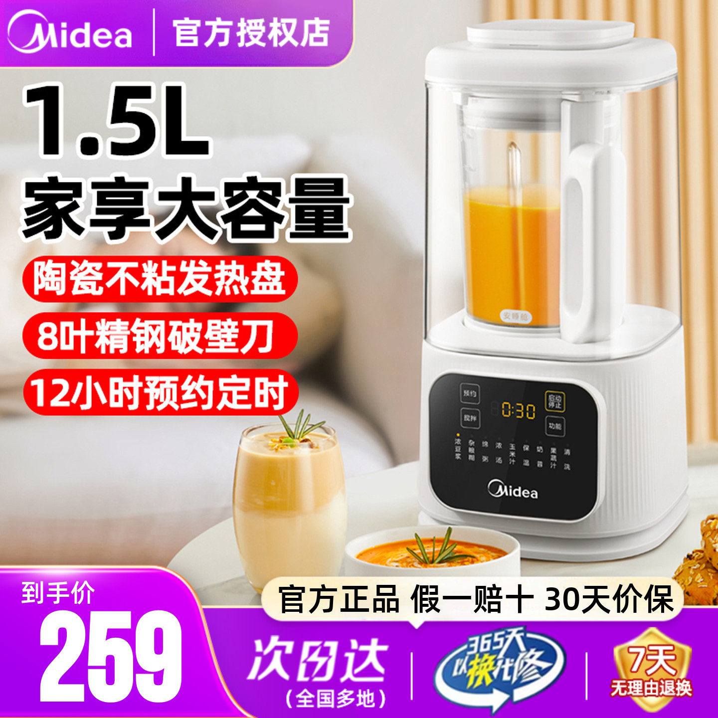 美的破壁机家用全自动无渣多功能豆浆料理榨汁一体轻音2025新款静