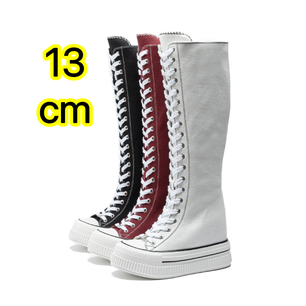 13cm超高跟隐形内增高女板鞋帆布增高长靴高筒靴板鞋小个子松糕鞋