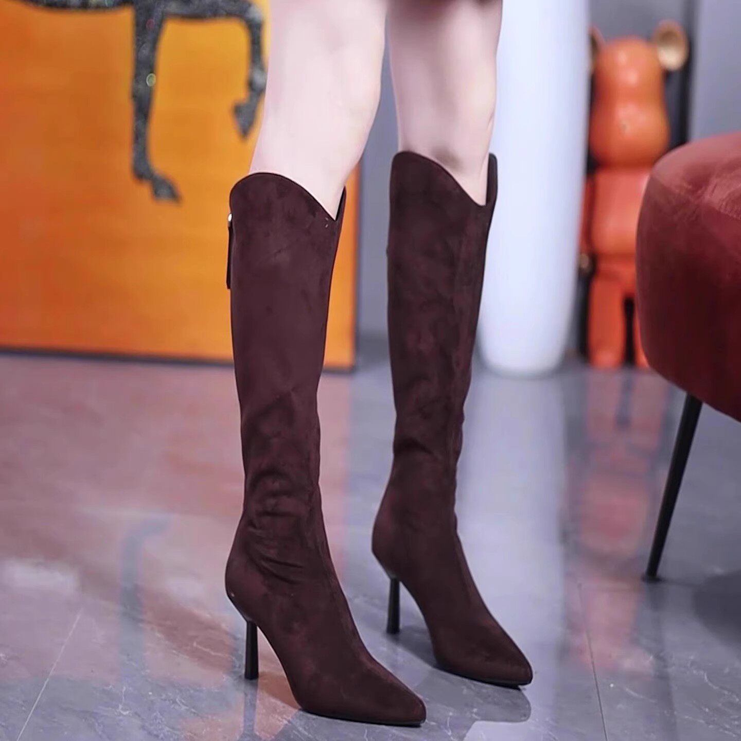- 尖头高跟过膝靴