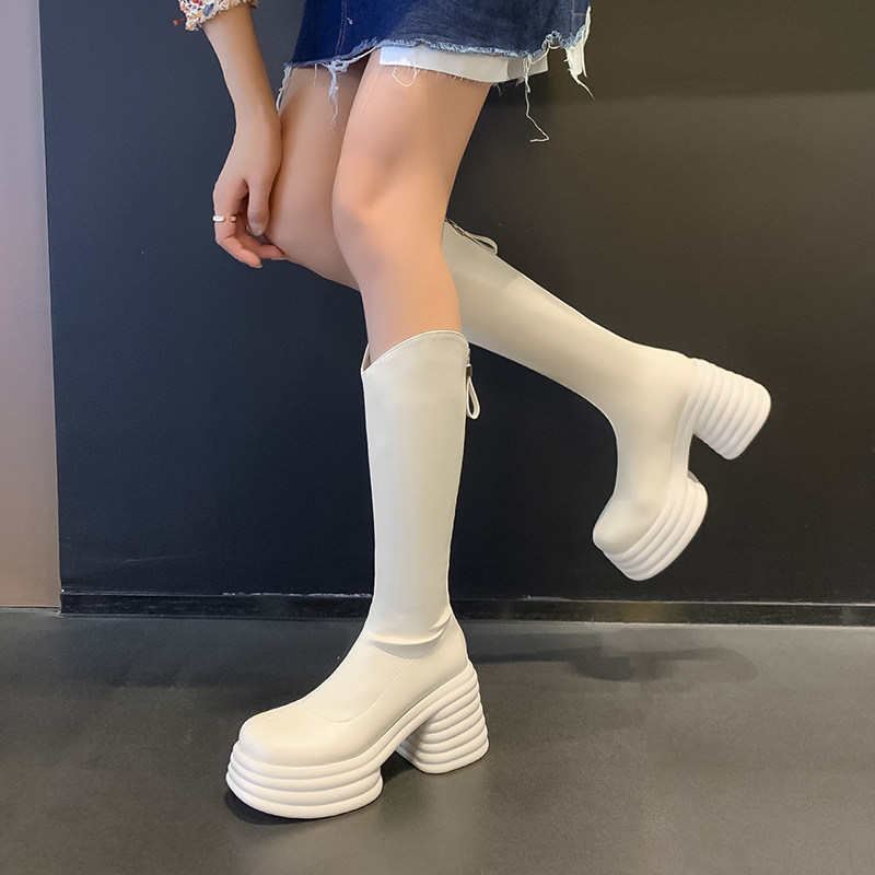 清仓断码捡漏厚底粗跟高筒长靴女靴子小个子超高跟不过膝显瘦靴子