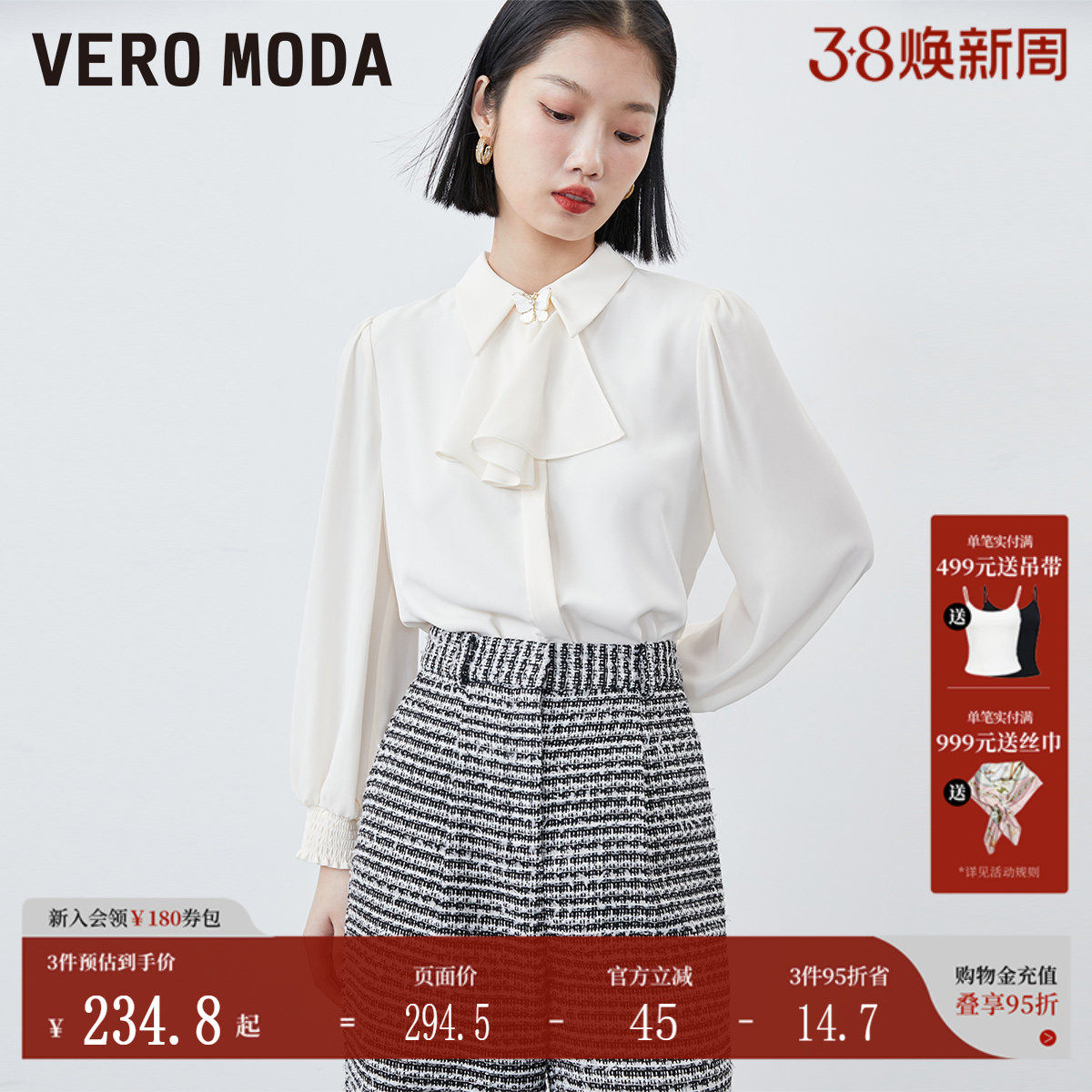 Vero Moda衬衫雪纺衫秋冬雪纺直筒七分袖灯笼袖宫廷324331018