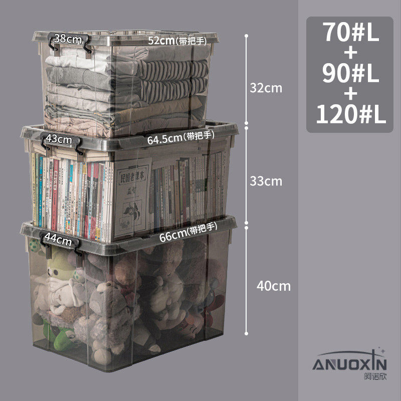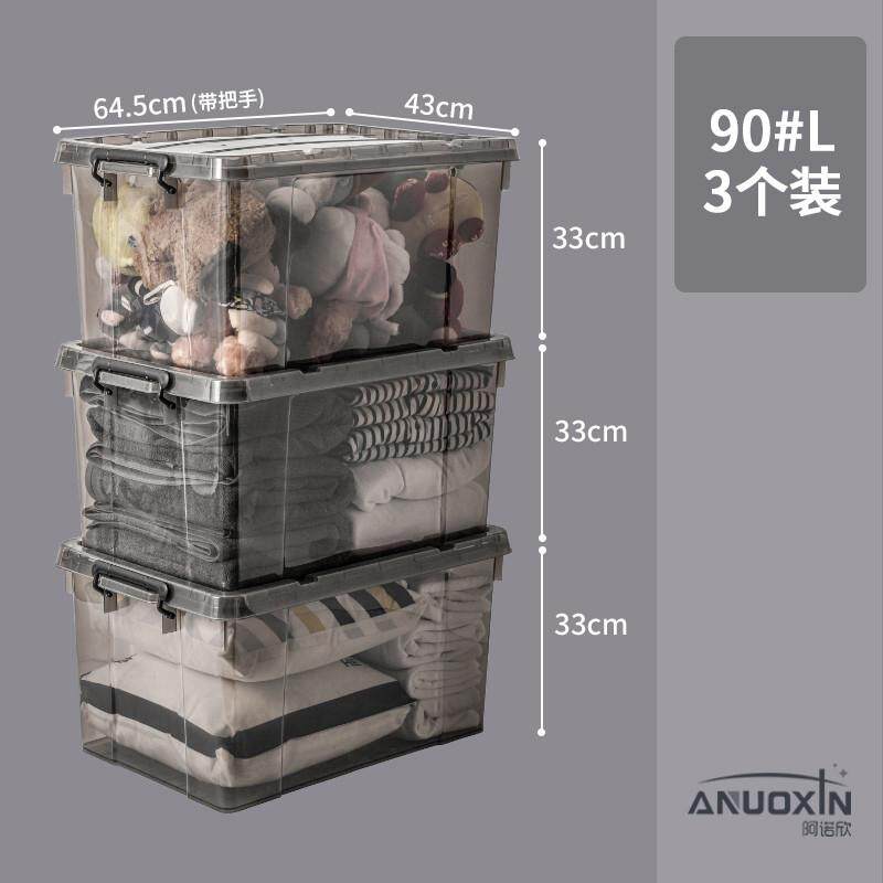 大容量透明黑色收纳箱家用衣服玩具整理箱塑料储物箱特大号收纳盒