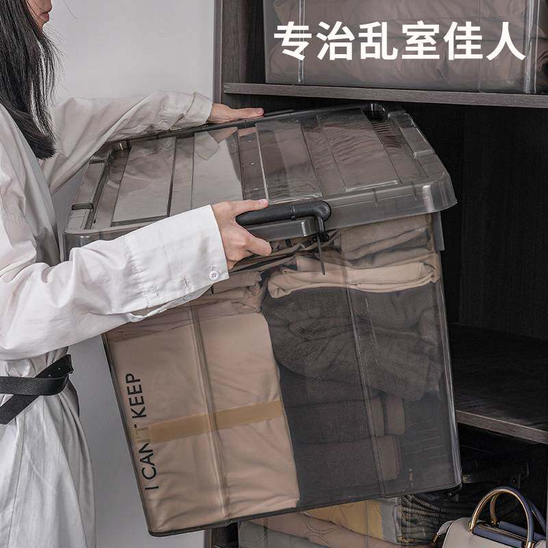 RI0T收纳箱特大号塑料有盖衣物整理箱带滑轮被子收纳盒透明储物箱