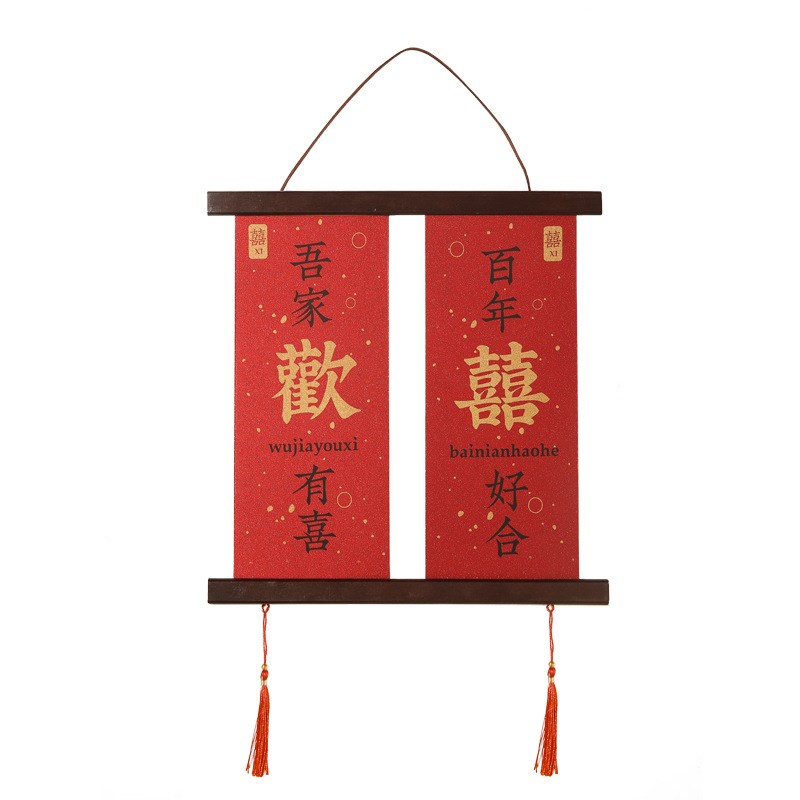结婚婚房布置装饰新中式房间客厅晨袍拍照背景墙高级喜字kt板布饰
