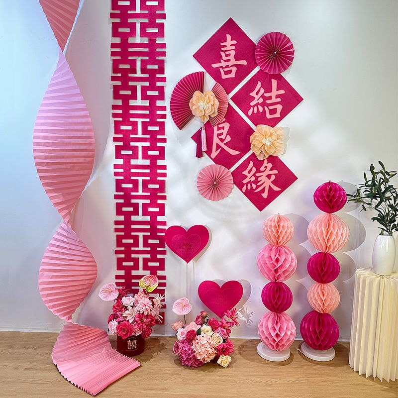 速发订婚结婚婚房布置装饰婚庆婚球房套装饰卧室客厅场景蜂窝礼立