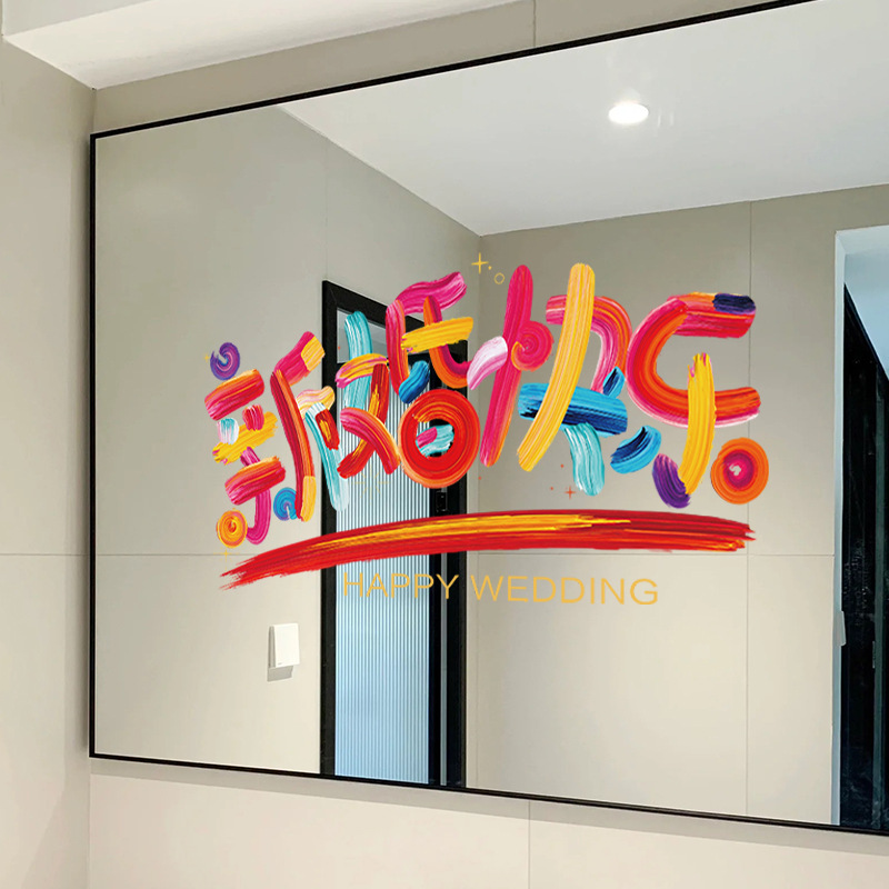 速发结婚婚房布置装饰喜字静玻贴彩虹2巴胺20多4电璃门窗贴纸