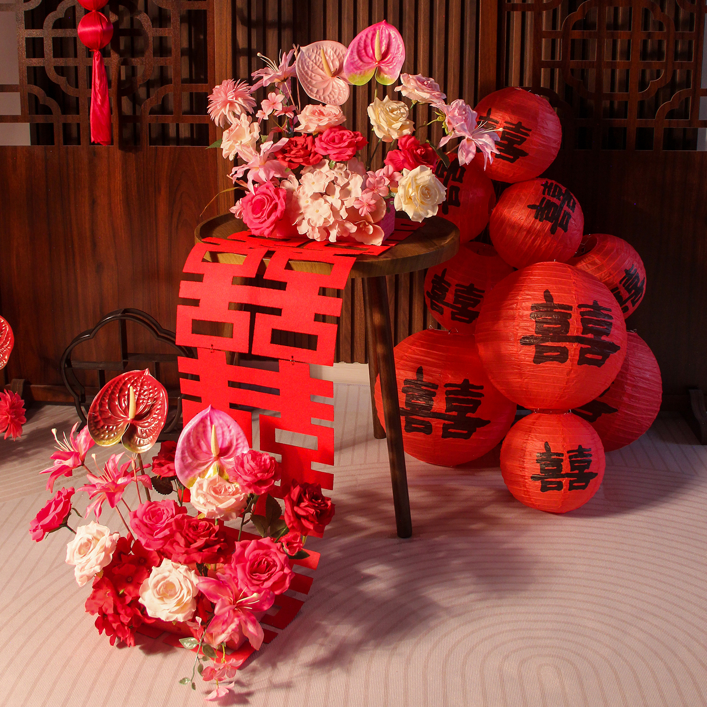 接亲伴娘喜字醒狮灯笼婚礼拍摄道具婚庆中式结婚婚房布置装饰新年