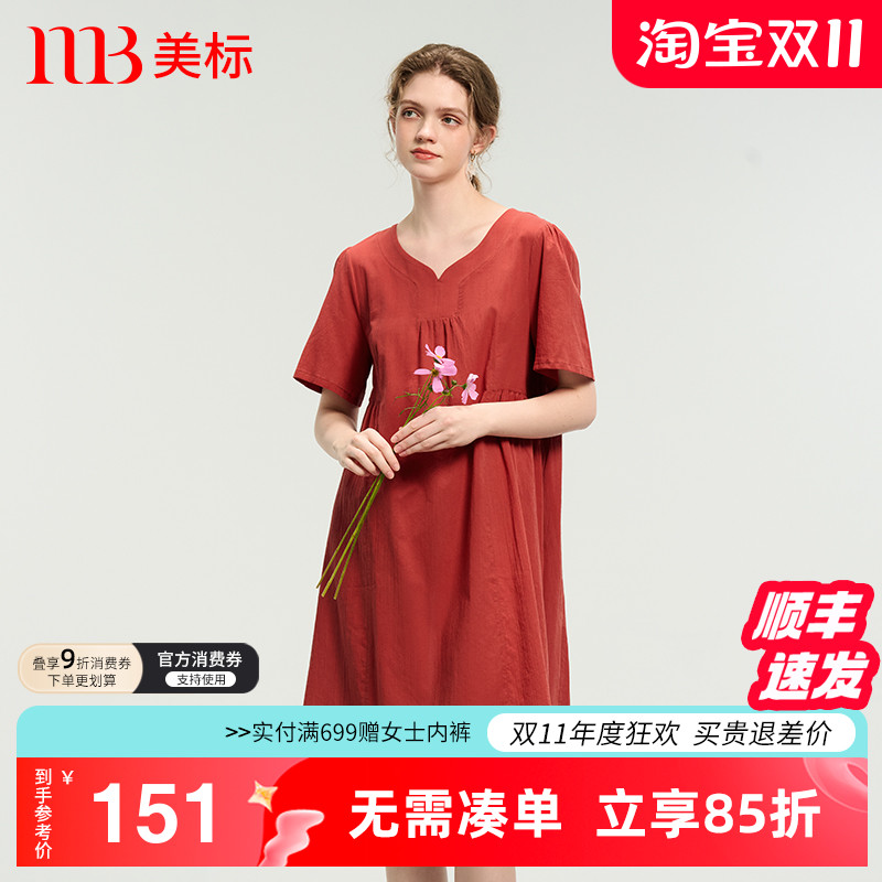 美标2025新款短袖纯棉睡裙女夏薄款全棉手工绣花可外穿休闲家居服